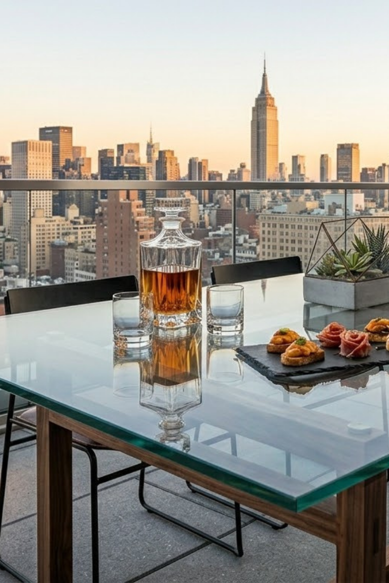 Pour un dessus de table extérieur situé en hauteur (balcon, terrasse surélevée) ou exposé à des risques d'impact particuliers, le verre feuilleté offre une tranquillité d'esprit incomparable. Son coût plus élevé se justifie pleinement dans ces configurations.